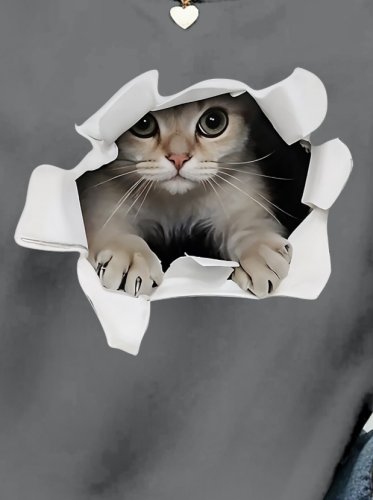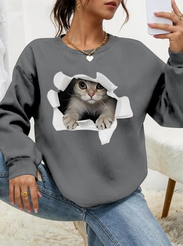 • Kadın uzun kollu bisiklet yaka kedi desenli viskon iki iplik bluz