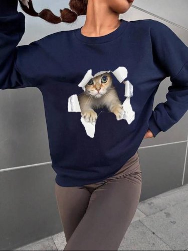 • Kadın uzun kollu bisiklet yaka kedi desenli viskon iki iplik bluz