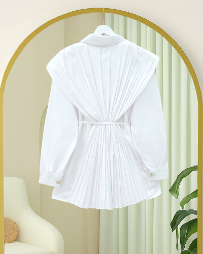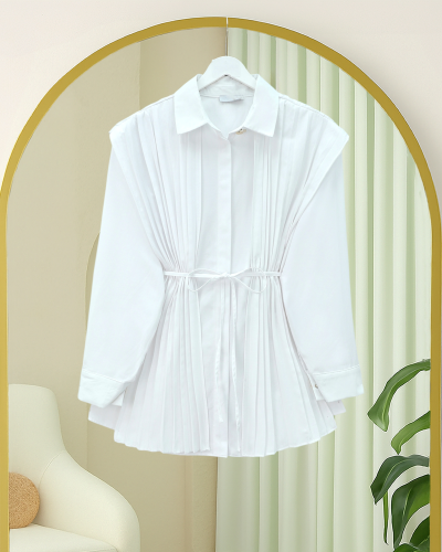 Önü ve Sırtı Pilise Detaylı Gizli Düğmeli Poplin Gömlek Beyaz