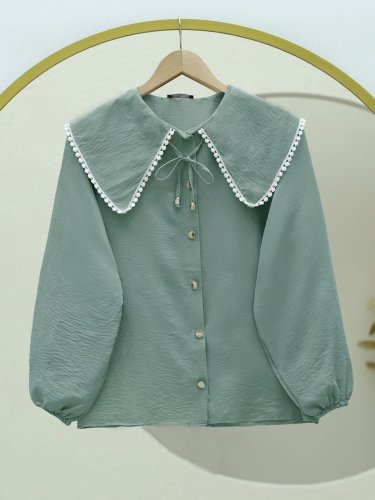 Bebe Yaka Dantelli Kolu Lastikli Gömlek Mint